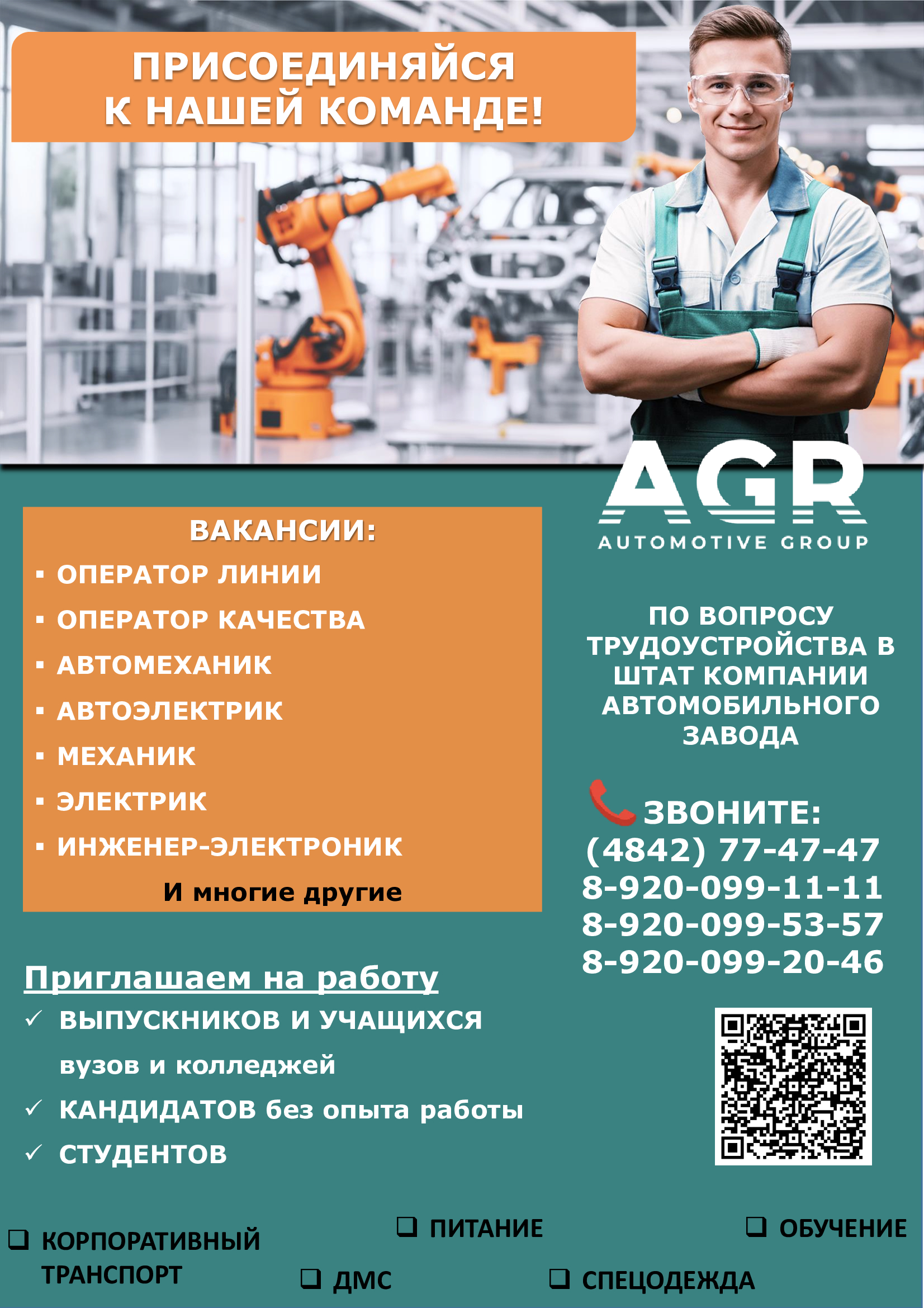 - горячее питание, ДМС, доставка, медосмотр за счет компании.