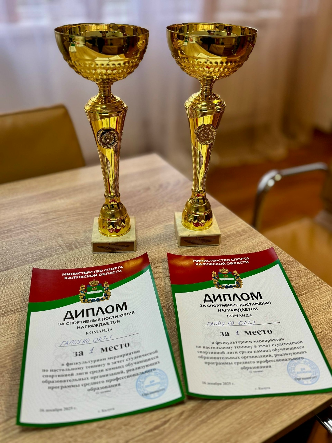 16.12.2025 г. в Калуге прошли областные соревнования по настольному теннису в зачёт спартакиады среди студентов СПО. Команды юношей и девушек нашего колледжа одержали безоговорочную победу- заняли первые места!. А 17.12.2025 г. студенты одержали победу в областных соревнованиях по мини-футболу в зачёт спартакиады студентов СПО! Молодцы! Поздравляем и гордимся!