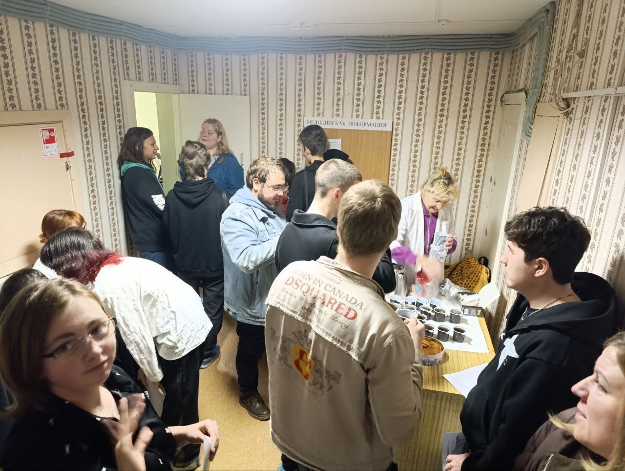 Взятие крови не происходит сразу. Волонтеры прошли несколько этапов: заполнили анкету, прошли терапевта, проверили давление, сдали кровь для предварительного анализа. Студенты, у которых все показатели были в норме, смогли стать донорами.